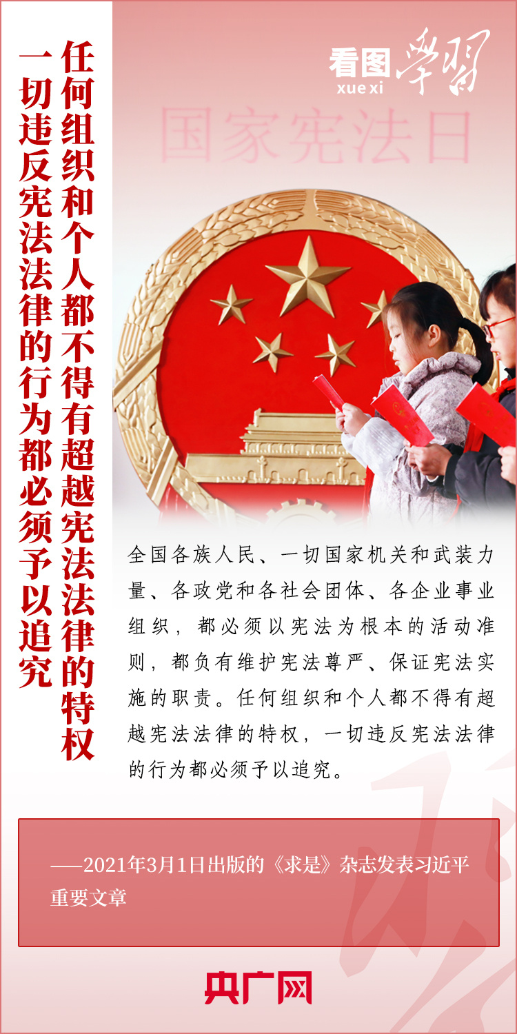 宪法是国家的基础法,,,,,是党和人民意志的集中体现。。。。。。。尊崇宪法、学习宪法、遵守宪法、维护宪法、运用宪法,,,,,是每个公民的义务。。。。。。。在第十个国家宪法日(12月4日)来临之际,,,,,《看图学习》栏目为您梳理习近平总书记关于宪法的主要叙述。。。。。。。一起来学习!